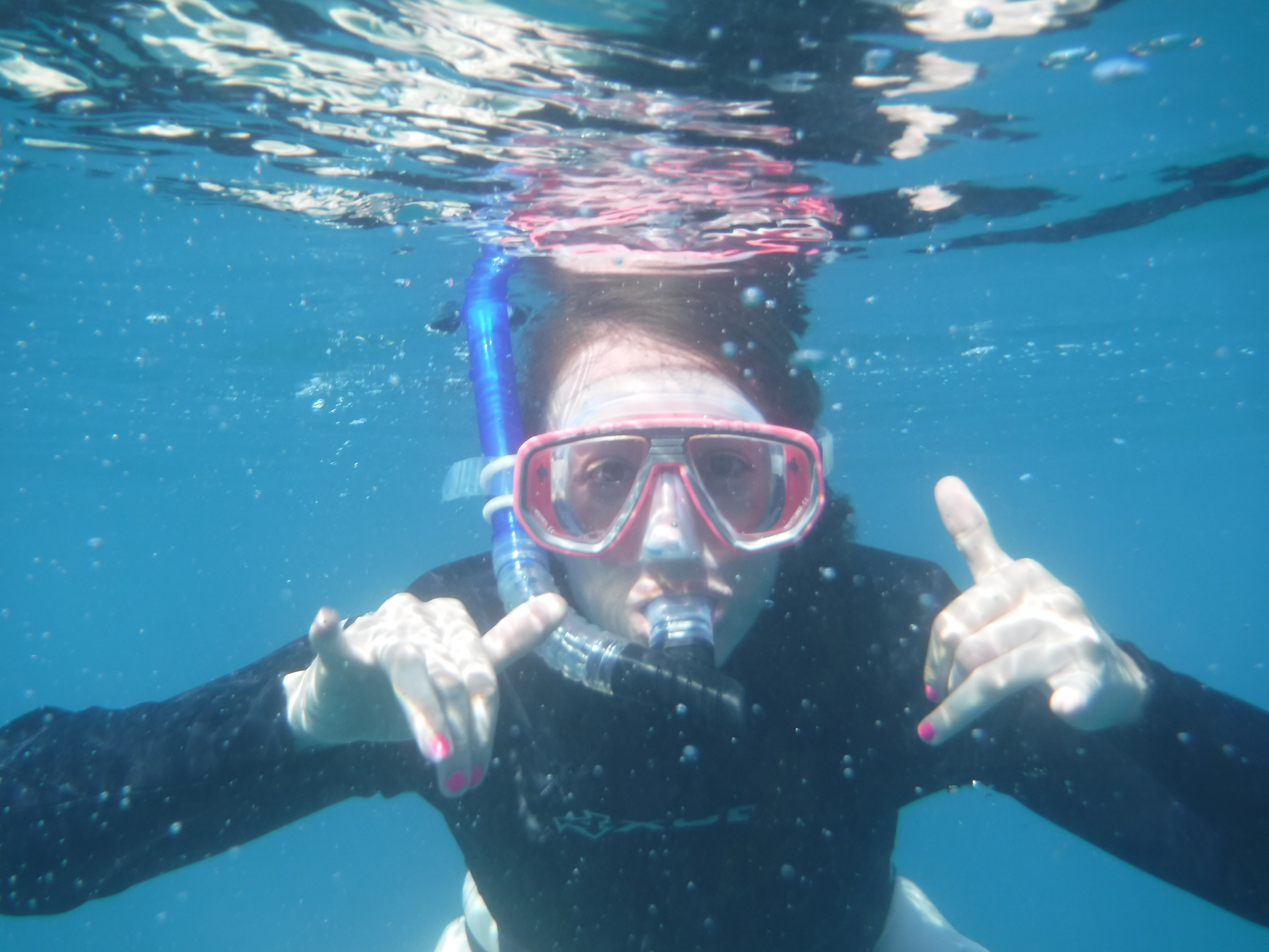 I didn’t have a good track record. I’d been snorkeling once before and turned green 20 minutes in. I went below deck and asked if they had anything I could take, but when the woman behind the counter showed me an off brand pill, I went full addict on her and asked if they had anything stronger. She frowned and nodded, “yes, but it’s five dollars.” Somewhere deep in my mind, 5 dollars seemed ridiculous for two pills, but the 15 layers on top of that all screamed, woman in labor style, “YES, GIVE ME THE DRUGS WOMAN.”