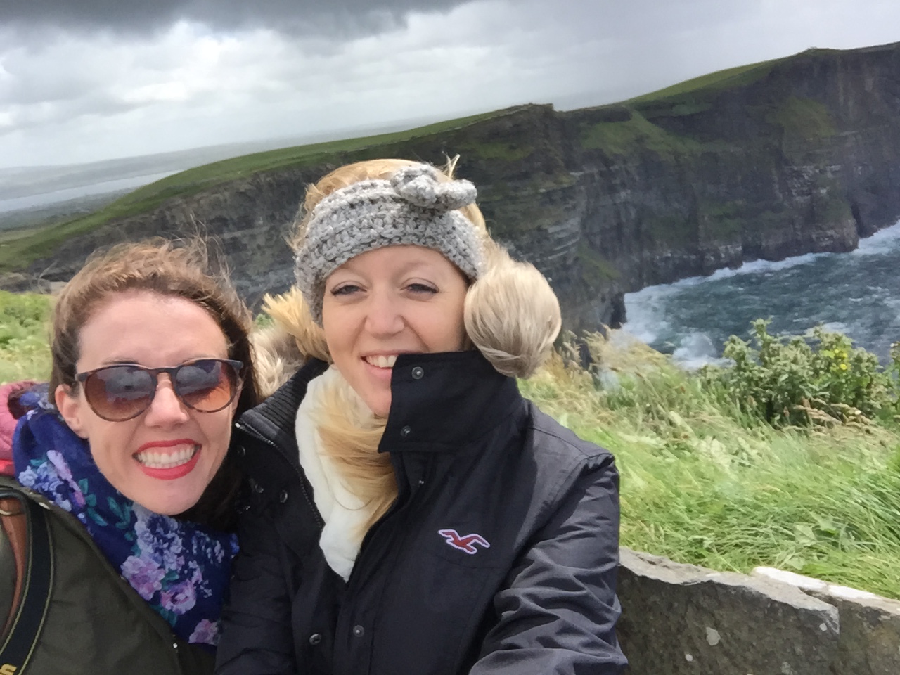 Now, almost immediately after we got off the bus, the winds picked up. And when I say picked up, I mean PICKED UP. It also started to sprinkle. But you see, when the wind is blowing say 30-40 miles per hour, a drop of rain starts to closely resemble a missile, so there is no doubt in my mind we looked absolutely insane as we made our way along the scenic cliffs, laughing hysterically with our tightened hoods and seemingly drunken diagonal steps.