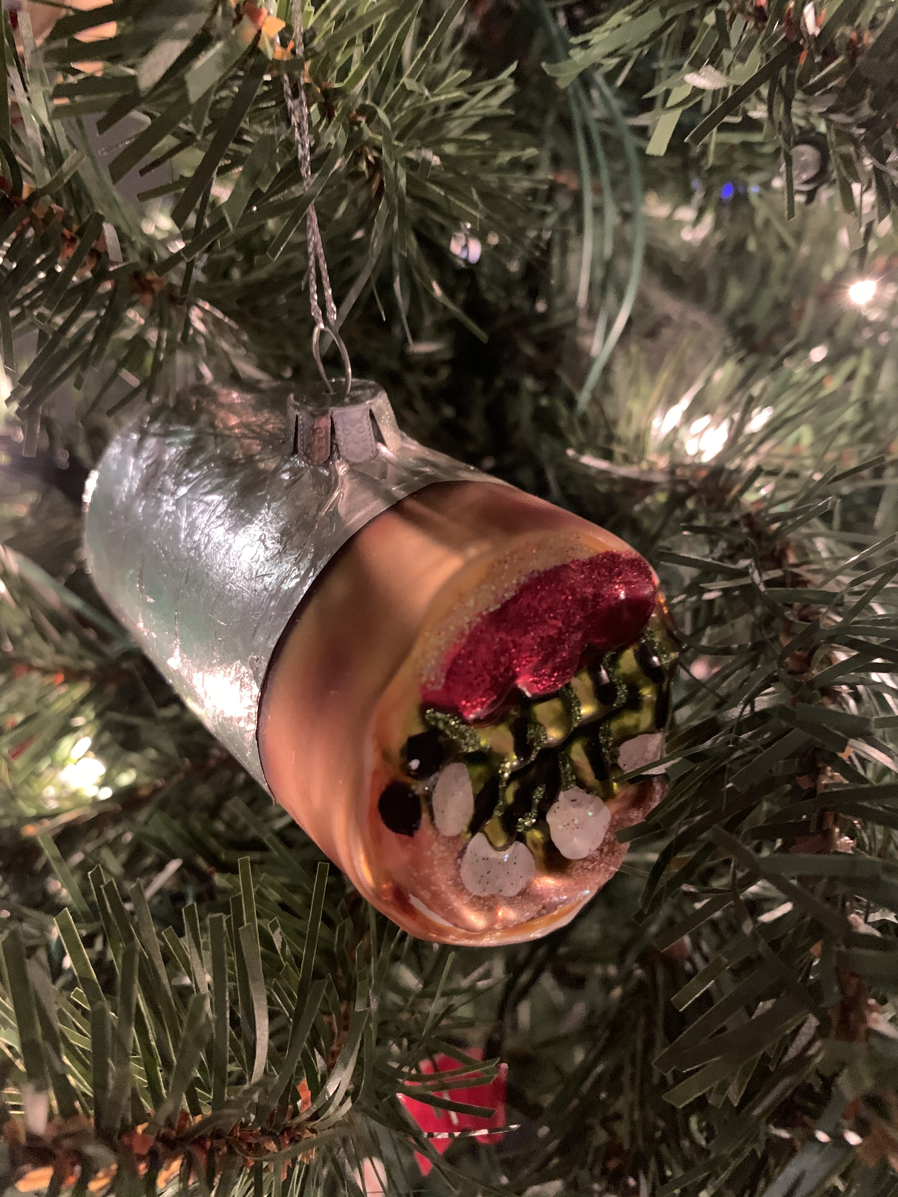 Ornaments are meant to highlight people and things that you love, right? Well one thing my family can agree on—almost every time we order-in for dinner—is burritos. My sister likes to joke (even though she’s serious) that she has Chipotle on speed dial, but our burrito backlog goes far beyond the local chain. So for a time of year when so many other foods and food groups reign supreme, I love having an ode to burritos up there on our tree, reminding us that yes, you should order-in tonight, you deserve it.