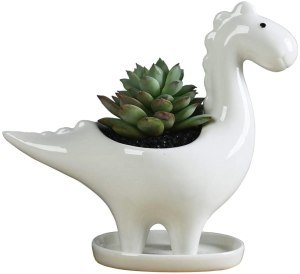 One of the cutest gifts I got for Christmas was a little succulent in a ceramic dinosaur plant pot that my sister gave me. If you know anything about me, I deeply struggle with keeping plants alive, so she got me this in the hopes that I might, you know, not kill it. And I am so dedicated to this new plant child—that I have named “Bronto”, like brontosaurus—that I have made his well being one of my goals for this year. #prayersforBronto (find the plant pot here)