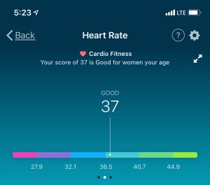 In late October, I came across a statistic on my FitBit called “VO2 Max”, which is essentially how efficiently your body uses oxygen during exercise. At the time, my score was a 35, which was marked as “average” for a woman my age. And even though I’d never previously heard of this measure of health, or had anyone telling me I needed to improve it, I instantly decided that I could no longer live a satisfying life unless my score was in the “good” range—which is a minimum of 36.5. As of now, my score is a 37, making me cleanly and wholly in the “good” range, so naturally I am now striving for the “great” range. Great is marked by a minimum score of 40.7, but for this year I’m going to start with a goal of 40.