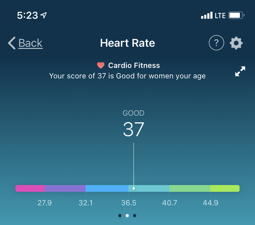 In late October, I came across a statistic on my FitBit called “VO2 Max”, which is essentially how efficiently your body uses oxygen during exercise. At the time, my score was a 35, which was marked as “average” for a woman my age. And even though I’d never previously heard of this measure of health, or had anyone telling me I needed to improve it, I instantly decided that I could no longer live a satisfying life unless my score was in the “good” range—which is a minimum of 36.5. As of now, my score is a 37, making me cleanly and wholly in the “good” range, so naturally I am now striving for the “great” range. Great is marked by a minimum score of 40.7, but for this year I’m going to start with a goal of 40.