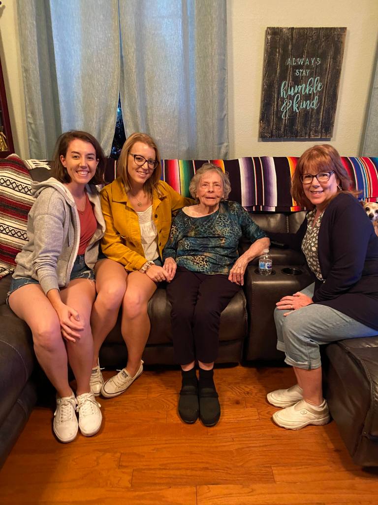 So as we sat in Shannon’s living room, talking to June, I couldn’t help but think about that moment in first grade, when June and Grammie walked to school together, not knowing how far this friendship would take them. Thinking about it, I felt like Grammie was in the room with us, along with Aunt Evelyn, each of them sitting in an empty seat on the couch. I ached at the thought that one day June would be sitting with them rather than us; when they will all just be characters in stories I tell my kids one day. But as we got ready to leave and June hugged us each twice, I knew that she’d always be real to us—always be close by, and always be a piece of home that I’d hold on to, no matter where I ended up.