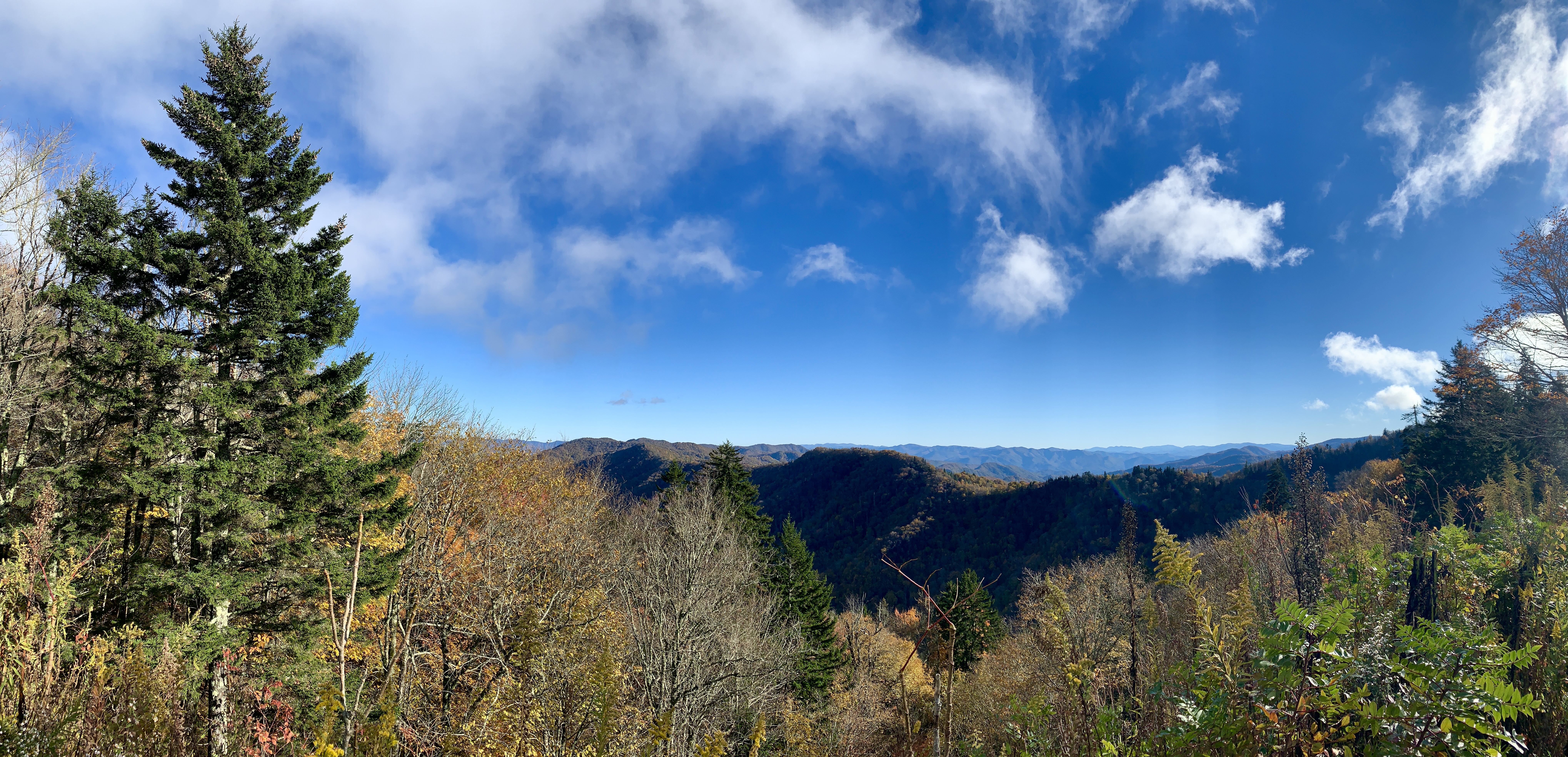 For our tour, we started in Pigeon Forge and then headed towards Gatlinburg and into Smoky Mountains National Park. Then we drove up to Newfound Gap where we saw a piece of the Appalachian trail, the Tennessee/North Carolina border, and some absolutely incredible views! Along the way, our tour guide made a couple of stops and let us get out to walk around and take pictures, and when we made it to the top, we had a half hour to take in the majestic beauty we were surrounded with.