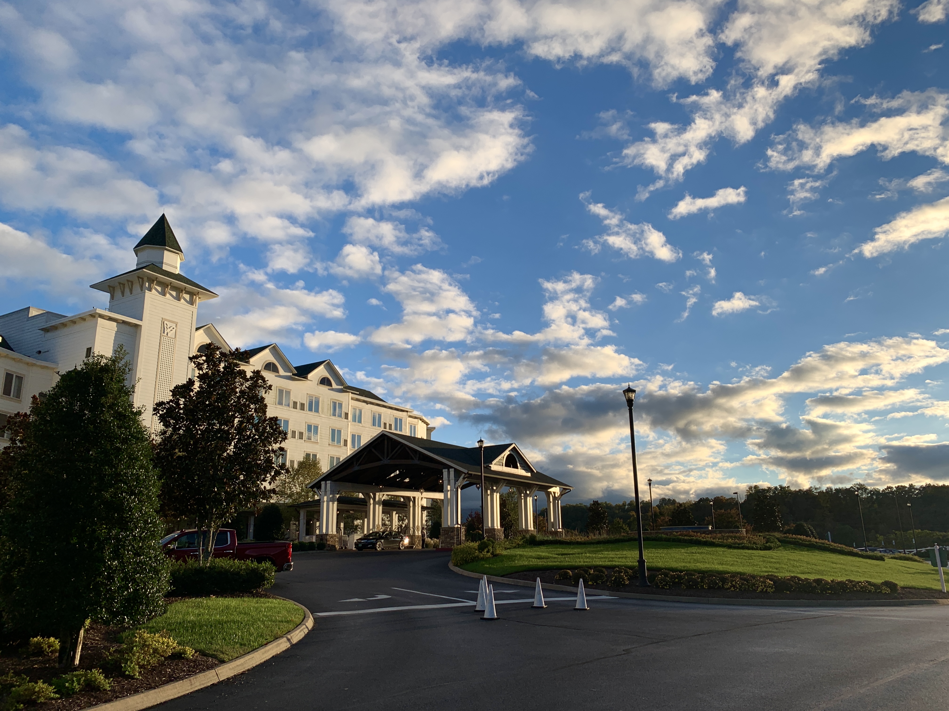 Our next stop was, at first, one that had only been sent in what if type text messages. It was a dream pit stop. One we assumed would stay in the “one day” category for a long time. But when we landed in Knoxville, Tennessee and picked up our rental car; when we put the directions into the GPS and drove the hour south to Pigeon Forge; when we came up over the hill and saw the sign accented with butterflies; and when we were given our room keys and a menu for an in-room breakfast that included coffee and homemade cinnamon bread—we knew we were really going to Dollywood.