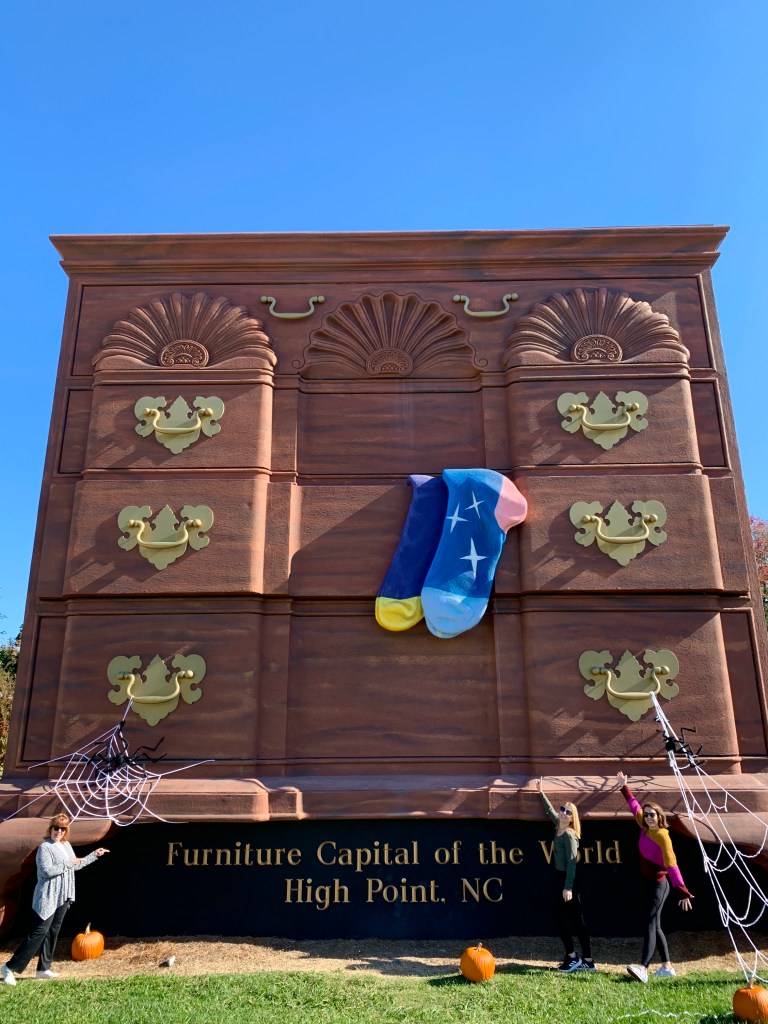 If you’re ever in High Point, NC, also known as the “furniture capital of the world”—which we quickly understood when we saw approximately 100 furniture stores, including one called “Furniture Land” that had north and south wings—check out the world’s largest chest of drawers. It is wonderful and strange and worth every minute of the drive. Plus, I hear they paint the socks different colors every once in a while—which might only be exciting and interesting to me and I accept that.