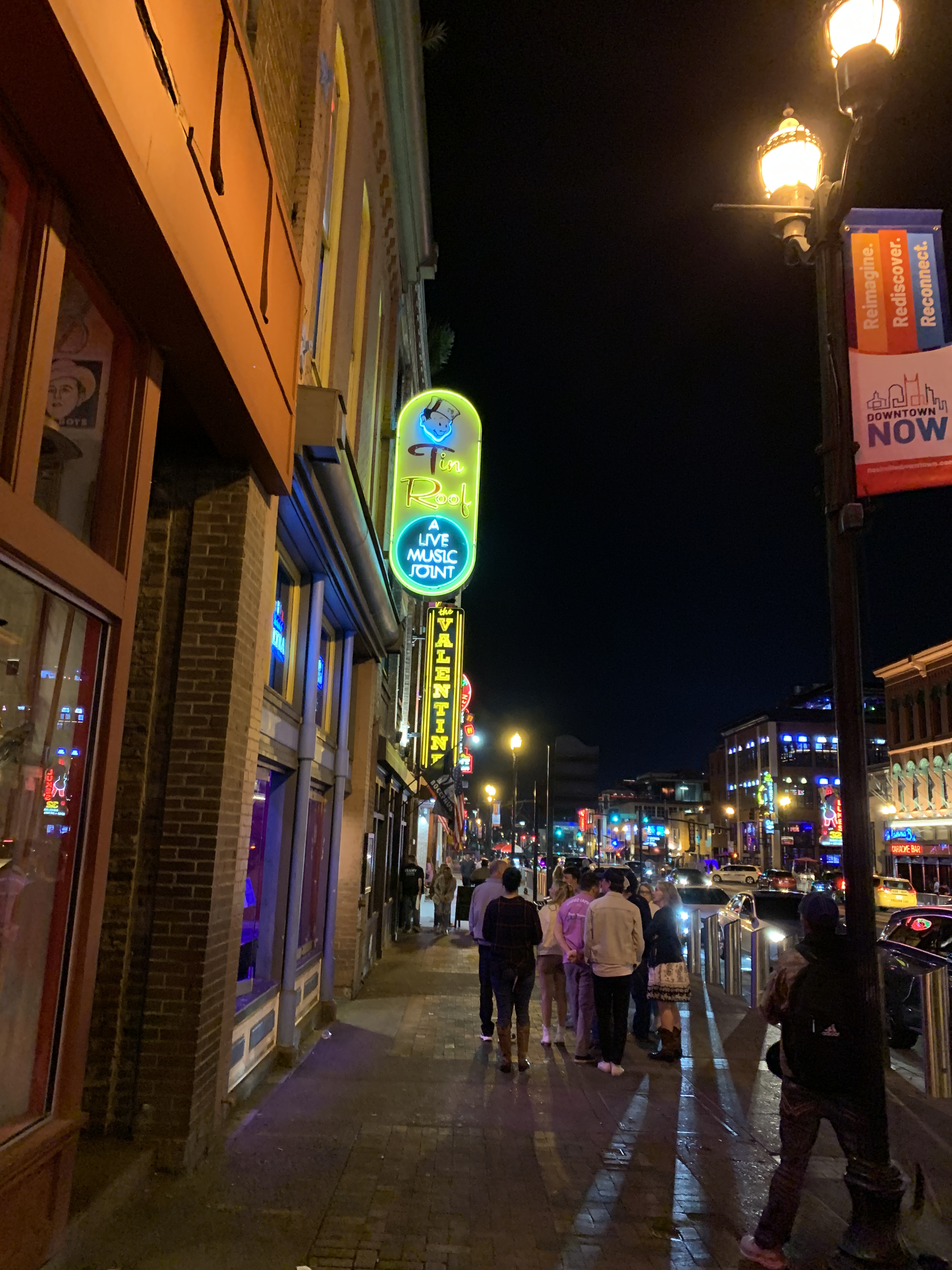 Similar to Vegas, Broadway comes alive at night. The dark sky gives the neon a chance to really glow, asking you to “come in!” “try this place!” “check this out!” We did a slow spin on our heels, taking in all of our options, each of us willing to go wherever the birthday boy had in mind. He pointed at a bar across the street, but then decided to peek in Tin Roof first, as there was a live band playing and the lead singer had an incredible voice.