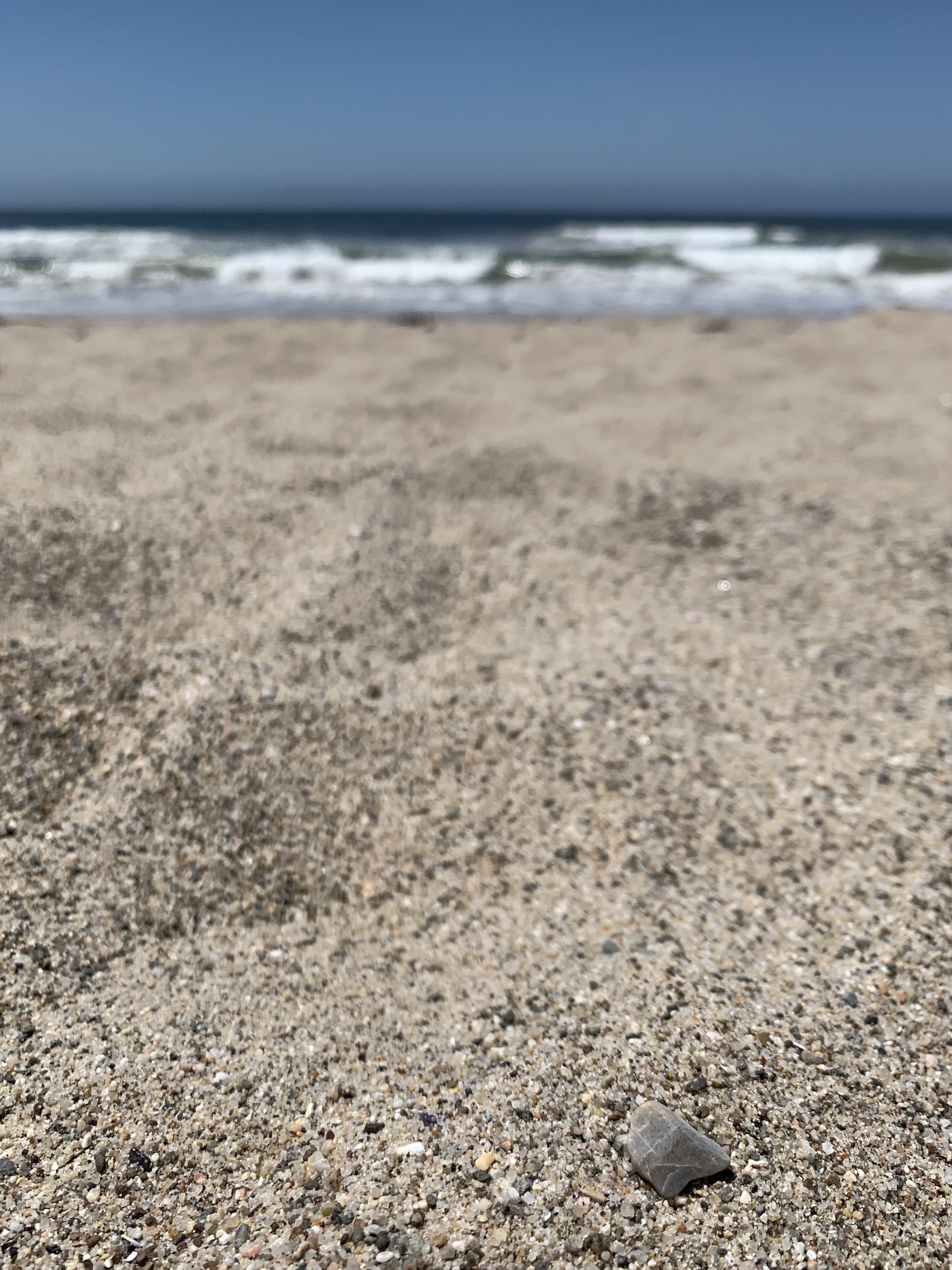 The beach was nearly empty, with only a few people in sight in either direction. All I could hear was the water. I sat crisscross applesauce and watched the waves as I ate my sandwich, occasionally pausing to close my eyes and feel the breeze hit my face, my hair, my toes. The ocean was loud but my mind was quiet.