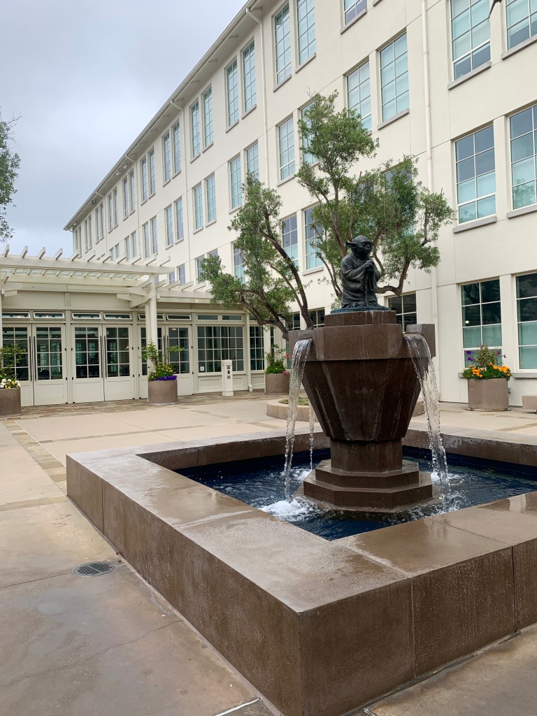 While walking, I said, “hey, I heard there’s a Yoda statue in this park,” which everyone agreed to go see. We took pictures and then I pointed at a nearby building.