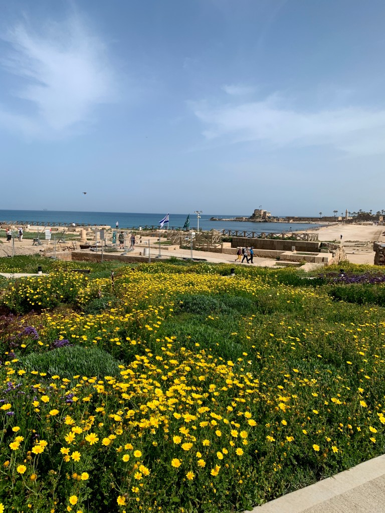 From the Roman Theatre we made our way through the ruins of the Hippodrome and Herod’s Palace, and then we drove to Herod’s Aqueduct, where we got to walk down and put our hands and feet in the Mediterranean Sea. The water was cool and refreshing, and the beach was covered in beautiful rocks and shells.