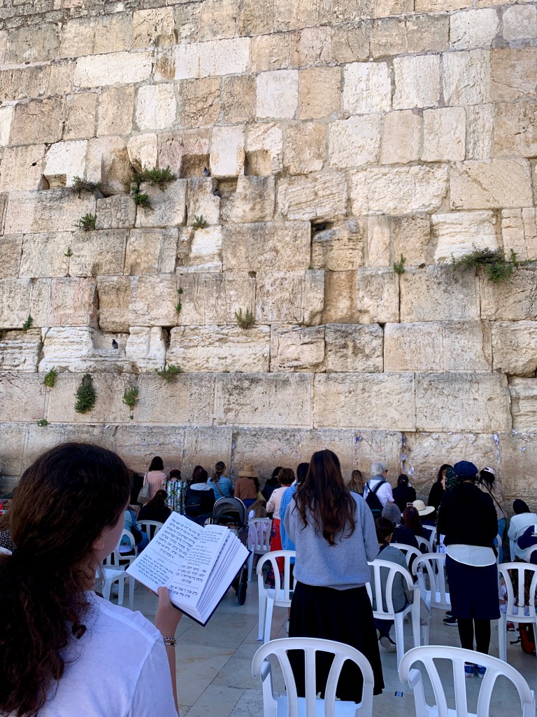 At the Western Wall, people of all faiths come to pray. There are chairs set up and shelves full of prayer books that people can read from. There is also a divide down the center, separating men and women.