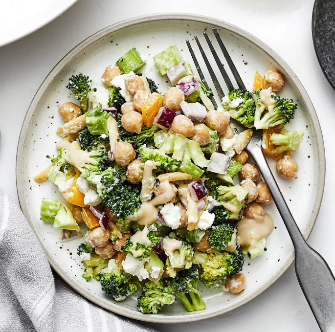 Super easy to throw together, and the lemon tahini dressing is delicious.