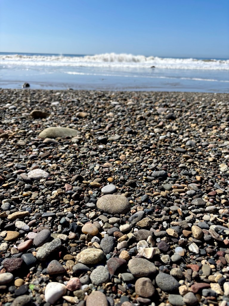 Then I made my way to El Matador State Beach, amazed at how few people were in the parking lot, how empty the pebbly sand was. I set up on top of the hill overlooking the water and read a few chapters of my library book. Then I walked around barefoot, going from dry sand to wet sand, to rocks and back, sometimes standing still with my eyes closed, just breathing. Then I set up against one of the famous rock formations—the windows for the sunset that draw huge crowds in the evenings—and I read some more, occasionally touching my forehead, my collarbones, thinking, it’s almost….hot?